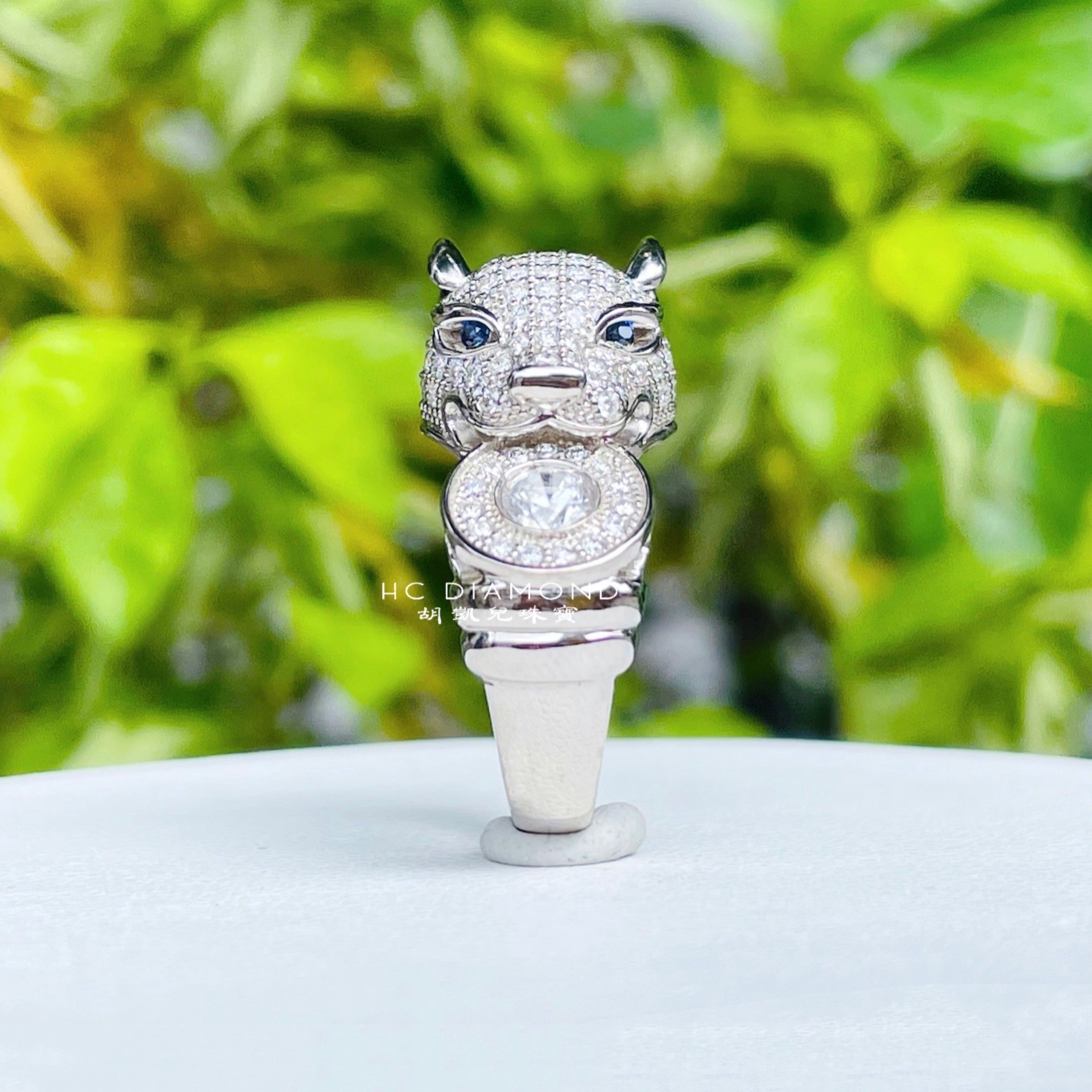 主鑽大小 : 一克拉(藍寶石訂製眼睛)