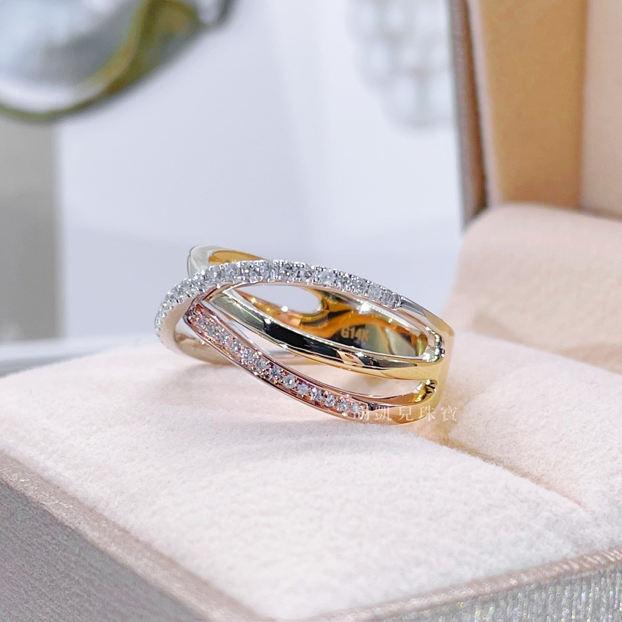 戒台顏色:白K色、黃K色、玫瑰金(可訂製全白K色、全黃K色,全玫瑰金,特殊色限定以K金材質)